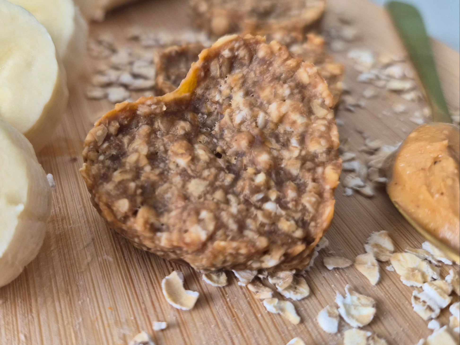 Ingredients: Natural peanut butter, bananas, oats.